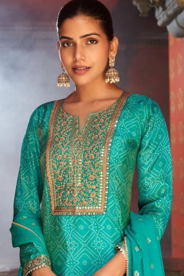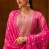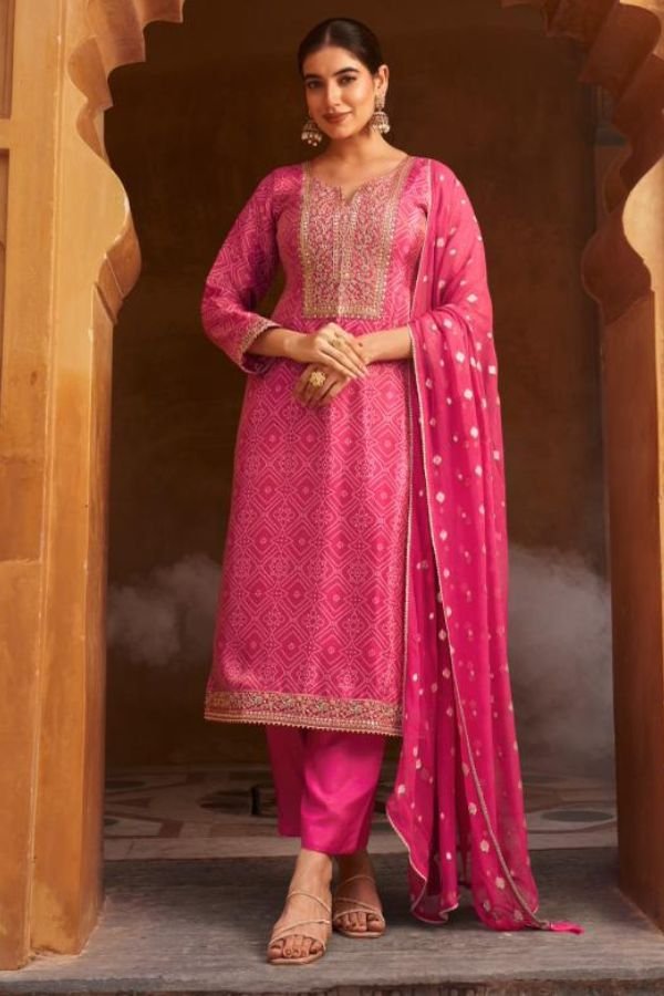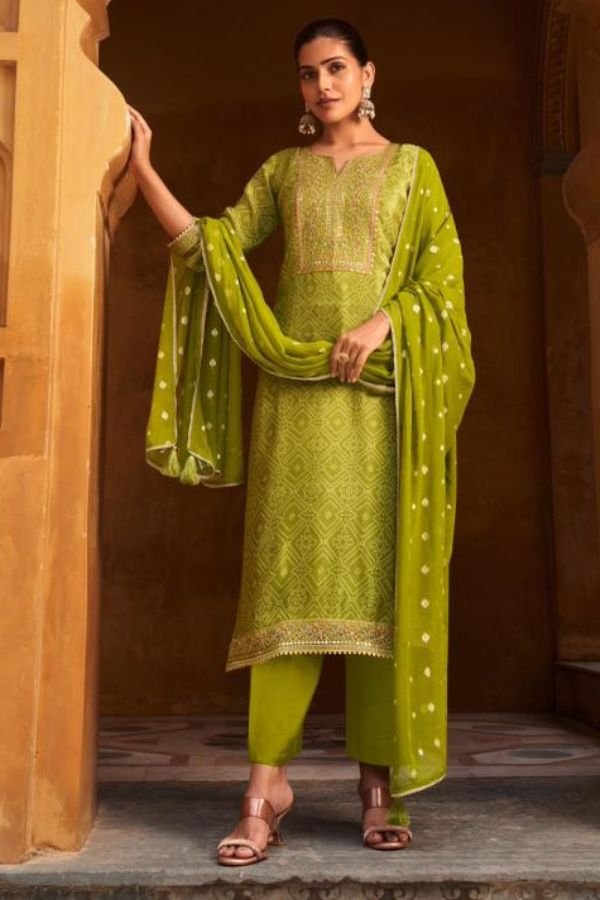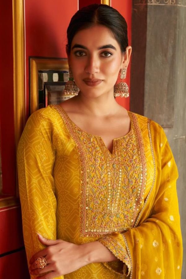 2. The bottom of this stunning ensemble is made from cotton silk solid dyed cotton that bring a contemporary flair to traditional attire. This combination of fabrics not only provides a luxurious feel but also ensures breathability and ease of movement, making it ideal for both casual outings and festive celebrations. The unstitched design allows for customization, giving you the freedom to tailor the suit to your unique style and fit preferences.