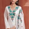 1. Discover the exquisite Avon Trendz Vedika 4pcs Salwar Suit Catalog, a perfect blend of elegance and comfort designed for the modern woman. This collection is tailored to keep you warm and stylish throughout the summer season. Each set features a top crafted from linen solid dyed, adorned with beautiful cross stitch embroidery and krocia lace that adds a touch of sophistication to your wardrobe. The intricate detailing not only enhances the aesthetic appeal but also ensures that you stand out on any occasion.