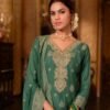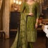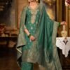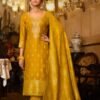 Crafted with utmost precision, the top of this suit is made from 100% pure viscose woollen pashmina jaquard twill. It features exclusive heavy embroidery work that adds a touch of elegance and sophistication. With a length of approximately 3.10 meters, the top offers ample fabric to create a stunning outfit.