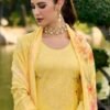 The dupatta of this suit set is made from pure Chinon fabric and features a beautiful digital print. The print adds a pop of color and visual interest to the overall ensemble. The suit set comes in an unstitched form, allowing you to customize the fit and style according to your preferences. With bookings open and free shipping, this Cinderella Evanora Pure Muslin Embroidered 6pcs Suit Catalog is a must-have for fashion enthusiasts who appreciate quality and style.