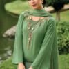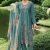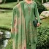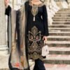 The top of each suit is made from pure viscose pashmina and features intricate embroidery work, adding a touch of sophistication to your winter wardrobe. The bottom is made from pure pashmina, ensuring maximum comfort and warmth during the colder months. And to complete the ensemble, the dupatta is made from pure chinon with a beautiful digital print, adding a pop of color and style.
