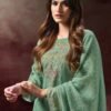 2. The bottom of this elegant ensemble is crafted from premium silk satin solid color, providing a perfect balance of style and comfort. The choice of solid color allows for versatility, making it easy to pair with various accessories and footwear for different occasions. The dupatta, made from premium wrinkle jacquard solid color and silk printed border with jari lace, adding a touch of grace and sophistication to the overall look. This combination of high-quality fabrics and thoughtful design elements makes the Berkley S3135 an ideal choice for women who wish to make a statement.