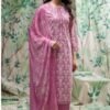 2. Complementing the stunning top is solid color bottom made from premium cotton, providing a perfect balance of comfort and versatility. The simplicity of the bottom allows for easy pairing with various accessories and footwear, making it an ideal choice for both casual outings and formal events. The set is completed with a luxurious dupatta made from premium pure chiffon printed. This dupatta not only enhances the overall aesthetic of the outfit but also adds an element of grace and fluidity to your look.