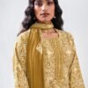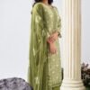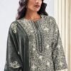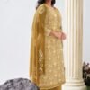 2. Complementing the stunning top is a solid-colored bottom made from premium cotton, providing a perfect balance of comfort and versatility. The simplicity of the bottom allows for easy pairing with various accessories and footwear, making it an ideal choice for both casual outings and formal events. The set is completed with a luxurious dupatta made from premium pure chiffon jacquard. This dupatta not only enhances the overall aesthetic of the outfit but also adds an element of grace and fluidity to your look.