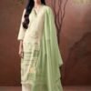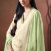 2. Complementing the stunning top is a solid-colored bottom made from premium cotton, providing a perfect balance of comfort and versatility. The simplicity of the bottom allows for easy pairing with various accessories and footwear, making it an ideal choice for both casual outings and formal events. The set is completed with a luxurious dupatta made from premium pure chiffon, featuring a captivating print and finished with elegant crochet lace. This dupatta not only enhances the overall aesthetic of the outfit but also adds an element of grace and fluidity to your look.