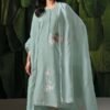2. Complementing the stunning top is a solid-colored bottom made from premium cotton, providing a perfect balance of comfort and versatility. The simplicity of the bottom allows for easy pairing with various accessories and footwear, making it an ideal choice for both casual outings and formal events. The set is completed with a luxurious dupatta made from premium pure organza khadi, featuring a captivating print with embroidery and crochet lace border. This dupatta not only enhances the overall aesthetic of the outfit but also adds an element of grace and fluidity to your look.