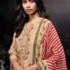 2. The bottom of this elegant ensemble is crafted from premium silk satin solid color, providing a perfect balance of style and comfort. The choice of solid color allows for versatility, making it easy to pair with various accessories and footwear for different occasions. The dupatta, made from premium pure bemberg lawn printed with jari lace border, adding a touch of grace and sophistication to the overall look. This combination of high-quality fabrics and thoughtful design elements makes the Etasha S3914 an ideal choice for women who wish to make a statement.