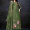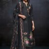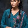 2. The bottom of this elegant ensemble is crafted from premium viscose silk satin solid color, providing a perfect balance of style and comfort. The choice of solid color allows for versatility, making it easy to pair with various accessories and footwear for different occasions. The dupatta, made from premium pure bemberg lawn printed with jari crochet lace border adding a touch of grace and sophistication to the overall look. This combination of high-quality fabrics and thoughtful design elements makes the Fera S3202 an ideal choice for women who wish to make a statement.