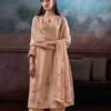 1. Introducing the Ganga Fashion Greesha S3828 Silk Satin Unstitched Ladies Catalog, a stunning collection designed for the modern woman who appreciates elegance and sophistication. This exquisite two-piece set is perfect for reselling, offering a unique blend of premium materials and intricate craftsmanship. The catalog features a top made from luxurious Premium pure bemberg silk satin printed with hand embroidery, handwork, schiffli embroidery lace on daman detailing. This attention to detail ensures that each piece not only looks beautiful but also feels comfortable against the skin.
