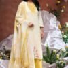 2. Complementing the stunning top is a bottom made from premium cotton printed, providing a perfect balance of comfort and versatility. The simplicity of the bottom allows for easy pairing with various accessories and footwear, making it an ideal choice for both casual outings and formal events. The set is completed with a luxurious dupatta made from premium pure mal , featuring a captivating print and finished with schiffli embroidery lace border. This dupatta not only enhances the overall aesthetic of the outfit but also adds an element of grace and fluidity to your look.