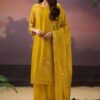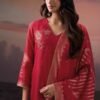 2. The bottom of this elegant ensemble is crafted from premium silk satin solid color, providing a perfect balance of style and comfort. The choice of solid color allows for versatility, making it easy to pair with various accessories and footwear for different occasions. The dupatta, made from premium pure viscose woven silk jacquard with jari lace border, adding a touch of grace and sophistication to the overall look. This combination of high-quality fabrics and thoughtful design elements makes the Himangi S3948 an ideal choice for women who wish to make a statement.