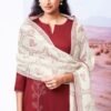 To complete the ensemble, a premium pure linen jacquard dupatta is included, featuring a beautiful printed with satin solid color border detailing. This adds a touch of grace and completes the overall look.