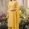2. Complementing the stunning top is a solid-colored bottom made from premium cotton, providing a perfect balance of comfort and versatility. The simplicity of the bottom allows for easy pairing with various accessories and footwear, making it an ideal choice for both casual outings and formal events. The set is completed with a luxurious dupatta made from premium pure chiffon printed. This dupatta not only enhances the overall aesthetic of the outfit but also adds an element of grace and fluidity to your look.