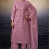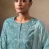 2. Complementing the stunning top is a solid-colored bottom made from premium cotton, providing a perfect balance of comfort and versatility. The simplicity of the bottom allows for easy pairing with various accessories and footwear, making it an ideal choice for both casual outings and formal events. The set is completed with a luxurious dupatta made from premium pure chiffon , featuring a captivating print. This dupatta not only enhances the overall aesthetic of the outfit but also adds an element of grace and fluidity to your look.