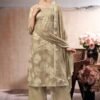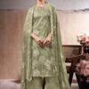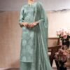 2. Complementing the stunning top is a solid-colored bottom made from premium cotton, providing a perfect balance of comfort and versatility. The simplicity of the bottom allows for easy pairing with various accessories and footwear, making it an ideal choice for both casual outings and formal events. The set is completed with a luxurious dupatta made from premium pure chiffon, featuring a captivating print. This dupatta not only enhances the overall aesthetic of the outfit but also adds an element of grace and fluidity to your look.