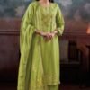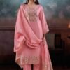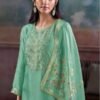 2. The bottom of this elegant ensemble is crafted from premium silk satin solid color, providing a perfect balance of style and comfort. The choice of solid color allows for versatility, making it easy to pair with various accessories and footwear for different occasions. The dupatta, made from premium pure viscose woven silk jacquard with jari lace border, adding a touch of grace and sophistication to the overall look. This combination of high-quality fabrics and thoughtful design elements makes the Mansiya S3888 an ideal choice for women who wish to make a statement.