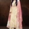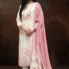 2. Complementing the stunning top is a solid-colored bottom made from premium cotton, providing a perfect balance of comfort and versatility. The simplicity of the bottom allows for easy pairing with various accessories and footwear, making it an ideal choice for both casual outings and formal events. The set is completed with a luxurious dupatta made from premium pure mal, featuring a captivating print and finished with elegant cotton solid color border. This dupatta not only enhances the overall aesthetic of the outfit but also adds an element of grace and fluidity to your look.