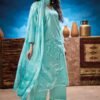 2. Complementing the stunning top is a solid-colored bottom made from premium cotton , providing a perfect balance of comfort and versatility. The simplicity of the bottom allows for easy pairing with various accessories and footwear, making it an ideal choice for both casual outings and formal events. The set is completed with a luxurious dupatta made from premium pure chiffon, featuring a captivating print with ready lace four side. This dupatta not only enhances the overall aesthetic of the outfit but also adds an element of grace and fluidity to your look.