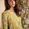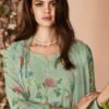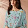 2. Complementing the stunning top is a solid-colored bottom made from premium cotton, providing a perfect balance of comfort and versatility. The simplicity of the bottom allows for easy pairing with various accessories and footwear, making it an ideal choice for both casual outings and formal events. The set is completed with a luxurious dupatta made from premium chiffon, featuring a captivating print and finished with four side cotton lace. This dupatta not only enhances the overall aesthetic of the outfit but also adds an element of grace and fluidity to your look.