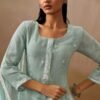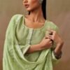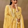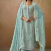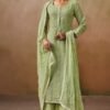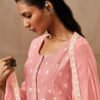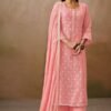 2. Complementing the stunning top is a solid-colored bottom made from premium cotton, providing a perfect balance of comfort and versatility. The simplicity of the bottom allows for easy pairing with various accessories and footwear, making it an ideal choice for both casual outings and formal events. The set is completed with a luxurious dupatta made from pure chiffon, featuring a captivating print and finished with four side embroidery lace. This dupatta not only enhances the overall aesthetic of the outfit but also adds an element of grace and fluidity to your look.