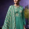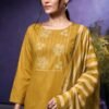 2. The bottom of this elegant ensemble is crafted from premium corduroy in solid color, providing a perfect balance of style and comfort. The choice of solid color allows for versatility, making it easy to pair with various accessories and footwear for different occasions. The dupatta, made from premium pure bemberg lawn printed with crochet lace, adding a touch of grace and sophistication to the overall look. This combination of high-quality fabrics and thoughtful design elements makes the Qiara S3951 an ideal choice for women who wish to make a statement.