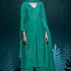 2. The bottom of this elegant ensemble is crafted from premium viscose silk solid color, providing a perfect balance of style and comfort. The choice of solid color allows for versatility, making it easy to pair with various accessories and footwear for different occasions. The dupatta, made from premium pure organza silk printed with embroidery and jari crochet lace border, adding a touch of grace and sophistication to the overall look. This combination of high-quality fabrics and thoughtful design elements makes the Upasana S3101 an ideal choice for women who wish to make a statement.