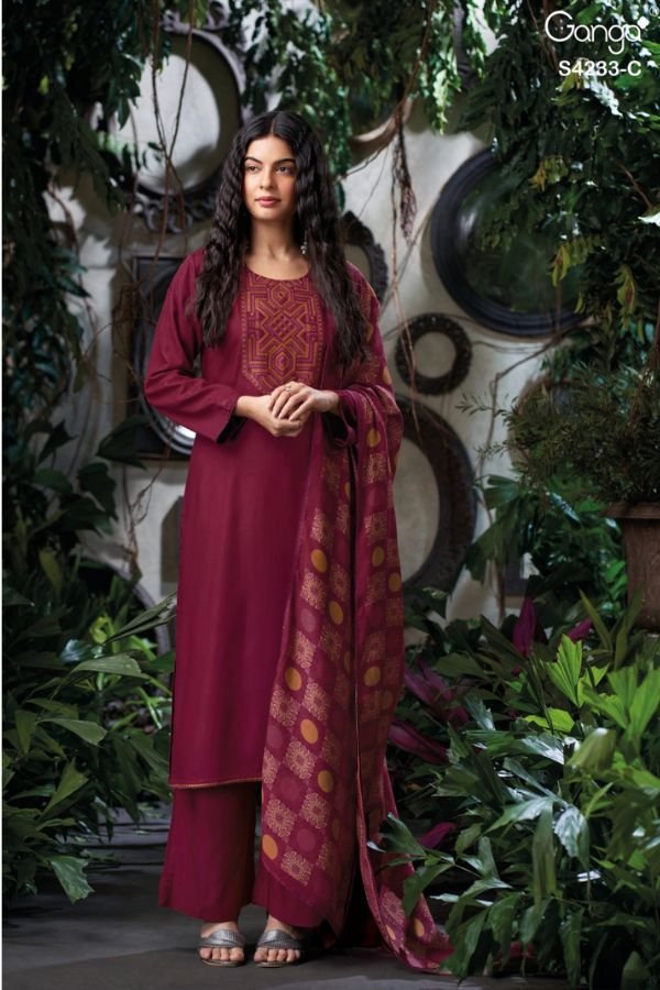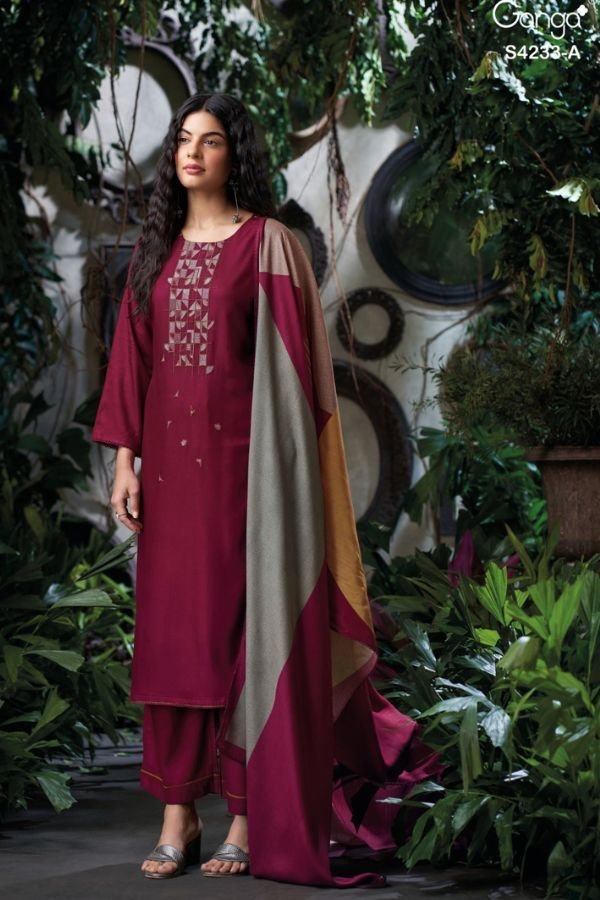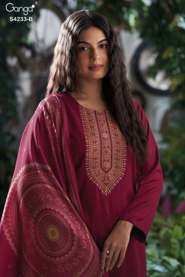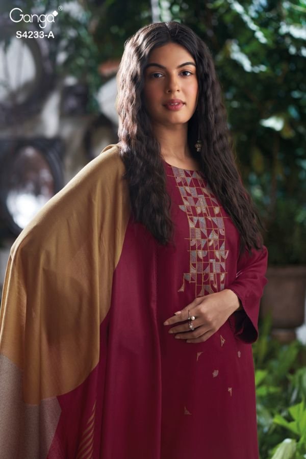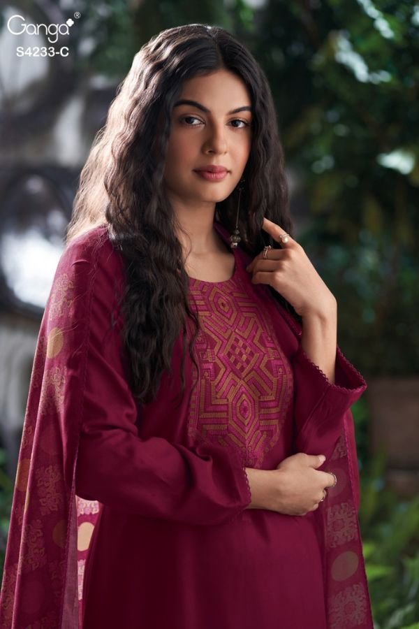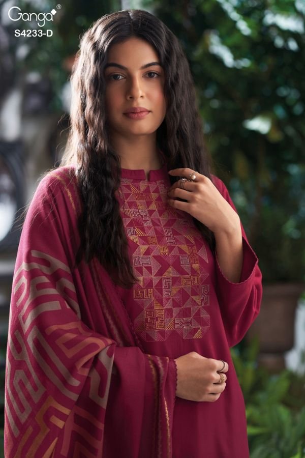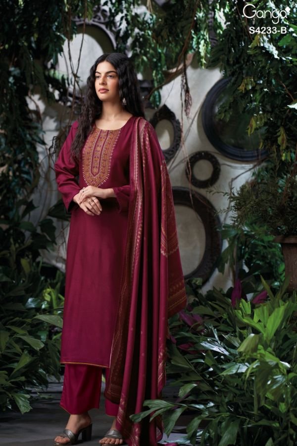 Introducing the exquisite Ganga Fashion Vinishka S4233 Pashmina Winter 4pcs Suits Catalog, a must-have addition to your winter wardrobe.