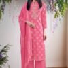 2. Complementing the stunning top is solid color bottom made from premium cotton, providing a perfect balance of comfort and versatility. The simplicity of the bottom allows for easy pairing with various accessories and footwear, making it an ideal choice for both casual outings and formal events. The set is completed with a luxurious dupatta made from premium pure chiffon printed. This dupatta not only enhances the overall aesthetic of the outfit but also adds an element of grace and fluidity to your look.