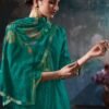 2. The bottom of this elegant ensemble is crafted from premium silk satin solid color, providing a perfect balance of style and comfort. The choice of solid color allows for versatility, making it easy to pair with various accessories and footwear for different occasions. The dupatta, made from premium pure bemberg lawn printed with banarasi silk jacquard border, adding a touch of grace and sophistication to the overall look. This combination of high-quality fabrics and thoughtful design elements makes the Vrisya S3798 an ideal choice for women who wish to make a statement.