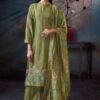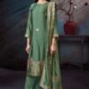 2. The bottom of this elegant ensemble is crafted from premium silk satin solid color, providing a perfect balance of style and comfort. The choice of solid color allows for versatility, making it easy to pair with various accessories and footwear for different occasions. The dupatta, made from premium pure viscose woven silk jacquard with jari lace border, adding a touch of grace and sophistication to the overall look. This combination of high-quality fabrics and thoughtful design elements makes the Cassidy S3751 an ideal choice for women who wish to make a statement.