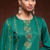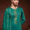 2. Complementing the top is a bottom made from the same high-quality premium cotton silk satin, ensuring a cohesive look that exudes luxury. The solid color of the bottom piece provides a perfect balance to the embroidered top, allowing for effortless pairing with a variety of accessories. This attention to detail in fabric selection not only enhances the overall aesthetic but also guarantees comfort throughout the day. The unstitched format offers flexibility, allowing customers to create a fit that flatters their individual body shape while maintaining the elegance that Ganga Fashions is known for.