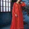 To complete the ensemble, the dupatta is made of pure chiffon and features lovely prints with scalloped embroidery.