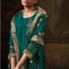 2. The bottom of this elegant ensemble is crafted from premium silk satin solid color, providing a perfect balance of style and comfort. The choice of solid color allows for versatility, making it easy to pair with various accessories and footwear for different occasions. The dupatta, made from premium pure viscose silk woven jacquard with jari lace border, adding a touch of grace and sophistication to the overall look. This combination of high-quality fabrics and thoughtful design elements makes the Mounika S3626 an ideal choice for women who wish to make a statement.