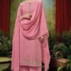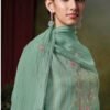 2. Complementing the stunning top is a premium cotton solid color bottom, designed to provide comfort without compromising on style. The simplicity of the bottom piece allows for versatility, making it easy to pair with various accessories and footwear. Additionally, the collection includes a premium pure chiffon dupatta, which features elegant embroidery and delicate crochet lace. This dupatta not only enhances the overall aesthetic of the outfit but also adds a layer of sophistication, making it perfect for festive celebrations or special gatherings.