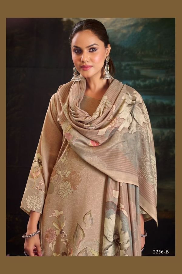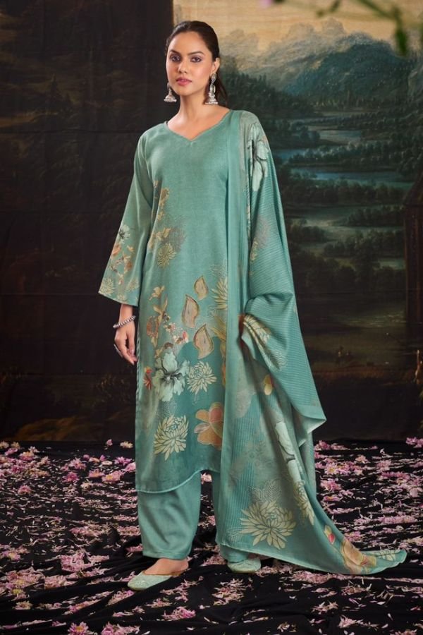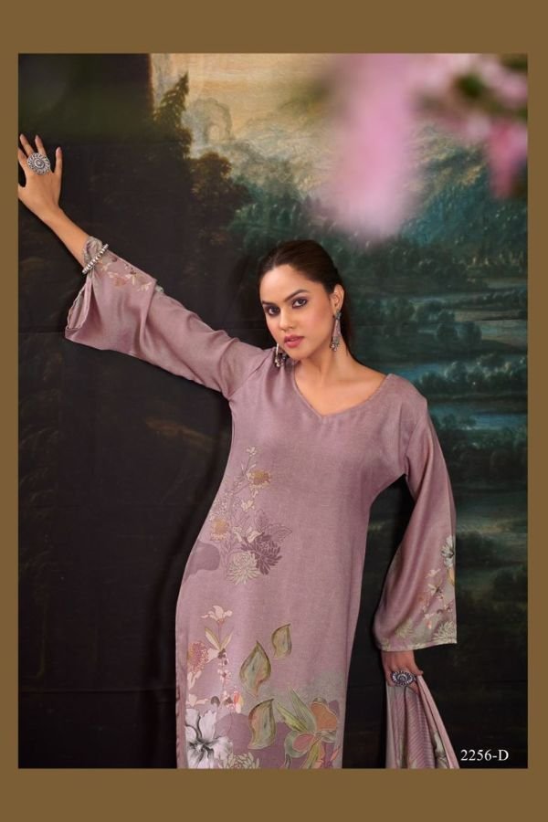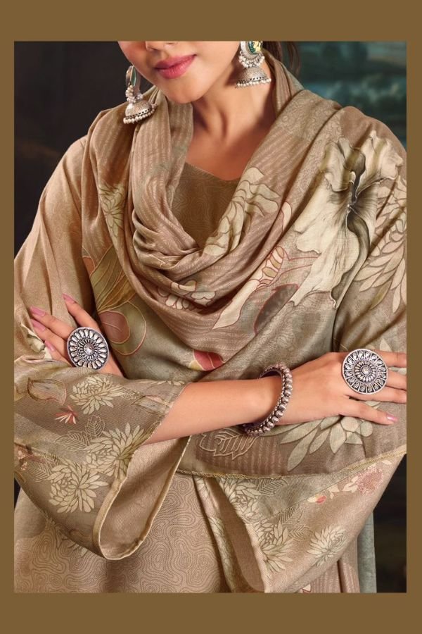 2. The standout features of this collection include a top crafted from pure pashmina, adorned with intricate digital prints that add a touch of elegance and sophistication. The bottom is made from pure pashmina digital print providing a perfect balance of style and comfort. Completing the ensemble is a beautifully designed dupatta, also made from pure pashmina and featuring stunning digital prints that enhance the overall aesthetic of the outfit. This unstitched set allows for customization, enabling you to tailor the fit to your personal style and preference.