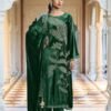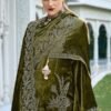 This exquisite suit set is crafted with the finest materials to ensure both style and comfort. The top is made of pure Munich viscose velvet, adorned with heavy designer fancy work that adds a touch of elegance to your ensemble. The bottom is crafted from pure Romanian Pashmina, providing a soft and luxurious feel against your skin.