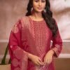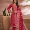 2. Complementing the stunning top is a bottom made from pure Santoon, known for its durability and smooth texture. This fabric choice provides a flattering fit while allowing for ease of movement, ensuring that you feel as good as you look. The set is completed with a beautifully designed dupatta, also made from pure Banglory silk jacquard, which features a harmonious blend of colors and patterns that elevate the entire outfit. The unstitched nature of the catalog set allows for customization, enabling you to tailor the suit to your personal style and preferences.