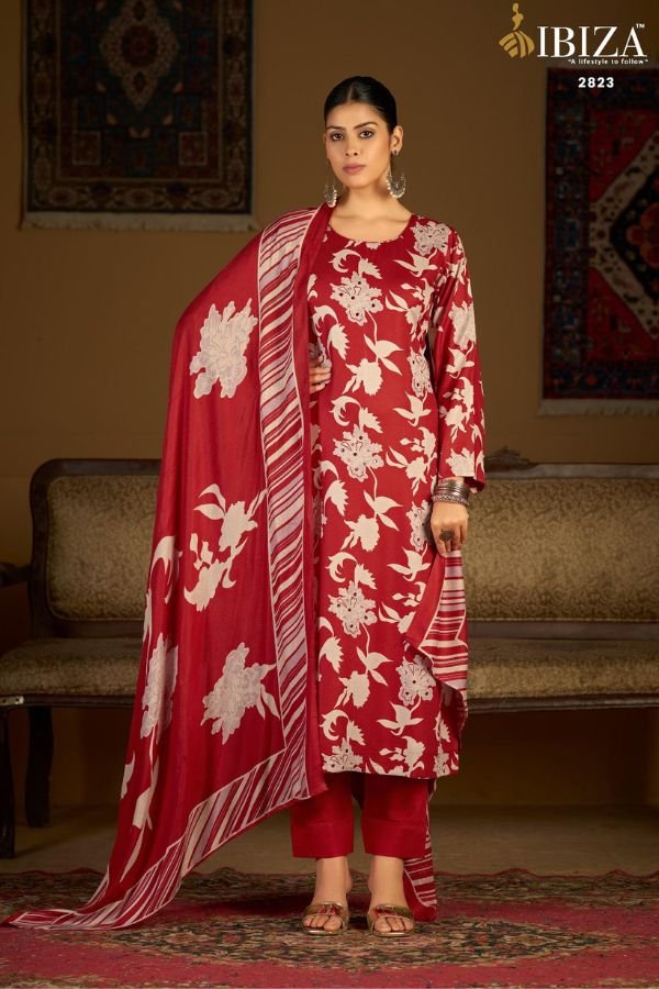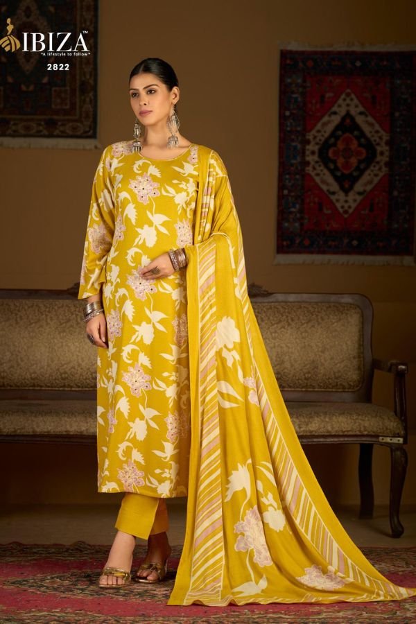 Step into a world of luxury and elegance with the Ibiza Rimowa 4Pcs Pashmina Winter Unstitched Suit Catalog. This exquisite collection is meticulously designed to elevate your winter wardrobe, offering a perfect blend of style, comfort, and sophistication. Each suit in this catalog is crafted from pure viscose pashmina digital print with handwork, a fabric celebrated for its sumptuous softness and lustrous sheen. The rich texture of the pashmina not only provides warmth during the chilly winter months but also exudes an air of opulence that is sure to turn heads.