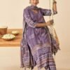 At the heart of each suit is a top made from pure Pashmina slub fabric, renowned for its softness and warmth. The fabric showcases a breathtaking hand batik print, a testament to the artistry and craftsmanship that goes into each piece. Complementing this exquisite print is intricate fancy embroidery that adds depth and texture, along with delicate lace work that enhances the overall aesthetic. This thoughtful combination not only elevates the visual appeal of the top but also ensures a comfortable fit, making it suitable for a variety of occasions—be it a casual gathering or a formal event.