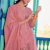 2. The Hasini collection is designed for those who appreciate the elegance of traditional attire with a modern twist. Each suit is unstitched, allowing you the freedom to tailor it to your unique style and fit. The dupatta is a highlight of this catalog, made from pure fine south cotton jacquard, featuring exquisite fancy lace and hangings that adds a touch of sophistication. This versatile piece can be styled in various ways, making it a perfect accessory for both festive occasions and casual gatherings.