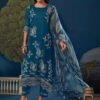 To complete the look, the set includes a digital printed pure fine muslin dupatta with fancy lace and hangings.