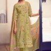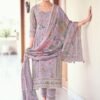 2. The bottom of this stunning ensemble is crafted from solid color pure cotton, ensuring comfort and style. It is adorned with borer print embroidery that complements the top beautifully, creating a cohesive look that is both stylish and versatile. This unstitched suit allows for customization, enabling you to tailor it to your personal style and fit preferences. Whether you choose to wear it as is or modify it to suit your taste, the Khidki Vol 3 collection promises to deliver a unique fashion statement that stands out.
