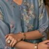The top is made of Puree bemberg H.O. (premium organza ) digital print. The sleeves and daman are adorned with a handwork and embroidery , adding an elegant touch to the overall design.