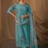 To complete the look, the set includes a digital printed pure chinnon dupatta with fancy lace and hangings.