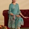 To complete the look, the set includes pure sushi silk digital print dupatta with fancy lace and hangings.