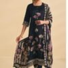 The top is made of Puree bemberg slub silk digital print. The sleeves and daman are adorned with embroidery and print patti work , adding an elegant touch to the overall design.