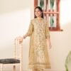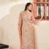 2. The bottom of this stunning ensemble is crafted from solid color pure cotton, ensuring comfort and style. It is adorned with borer print embroidery that complements the top beautifully, creating a cohesive look that is both stylish and versatile. This unstitched suit allows for customization, enabling you to tailor it to your personal style and fit preferences. Whether you choose to wear it as is or modify it to suit your taste, the Khidki collection promises to deliver a unique fashion statement that stands out.