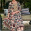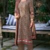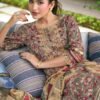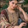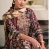 The top is made of Puree premium corduroy digital print The sleeves and daman are adorned with print patti and embroidery, adding an elegant touch to the overall design.