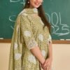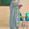 2. The Pathshala collection is designed for those who appreciate the elegance of traditional attire with a modern twist. Each suit is unstitched, allowing you the freedom to tailor it to your unique style and fit. The dupatta is a highlight of this catalog, made from pure mal checks block print, featuring with fancy lace and hangings that adds a touch of sophistication. This versatile piece can be styled in various ways, making it a perfect accessory for both festive occasions and casual gatherings.