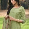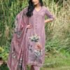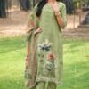 2. Complementing the stunning top is the bottom crafted from pure muslin in a solid color, which is elegantly embroidery patti to provide a seamless transition from the top. This combination not only enhances the overall look but also ensures comfort and ease of movement. The luxurious feel of muslin against the skin makes it a delightful choice for long hours of wear. The attention to detail in the embroidery reflects the brand’s commitment to quality and design, making this salwar suit set a must-have addition to your wardrobe.